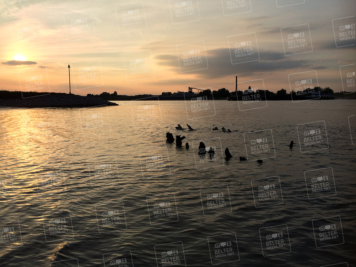 Schenkenschanz bei Emmerich, Schiffswracks von 1896, im Sonnenuntergang
